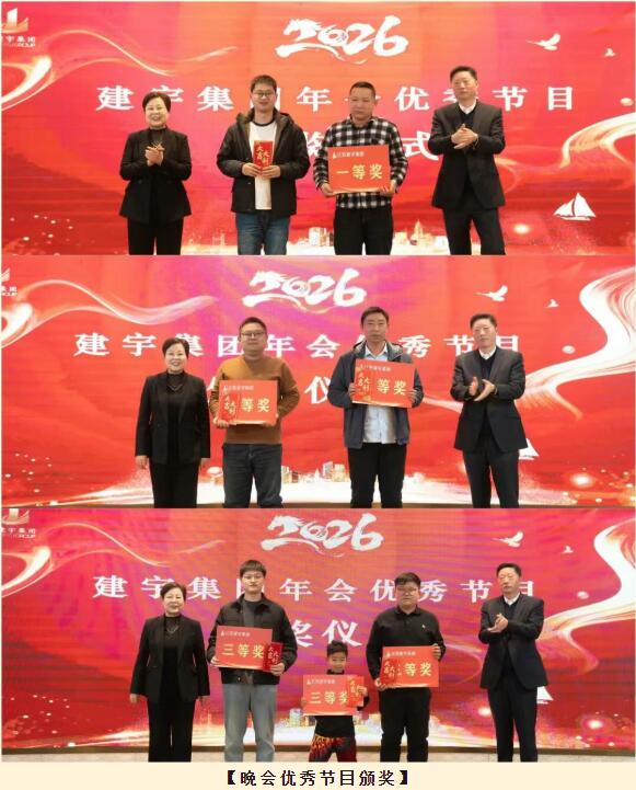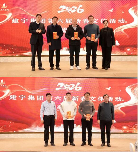 晚会伊始,董事长管民良作了热情洋溢的新年致辞,向全体建宇人致以新年的问候和最诚挚的祝福!全体建宇人欢聚一堂,其乐融融。董事长管民良携高管为本次文体比赛、2025年度游记征文比赛、2025年度优秀施工总结获胜者颁奖。