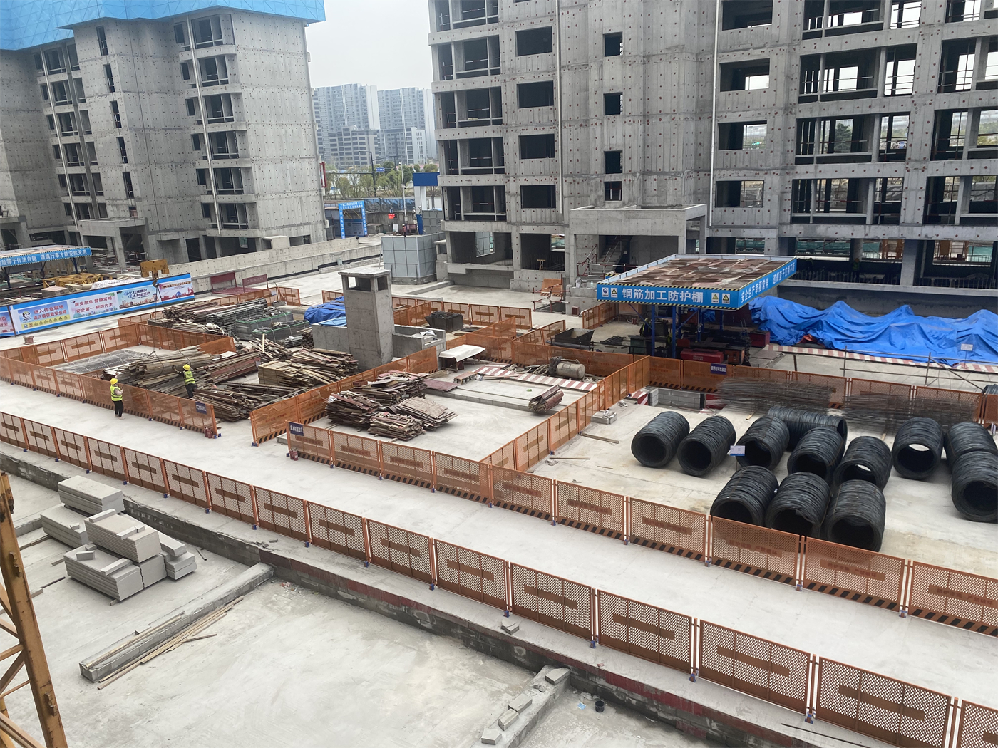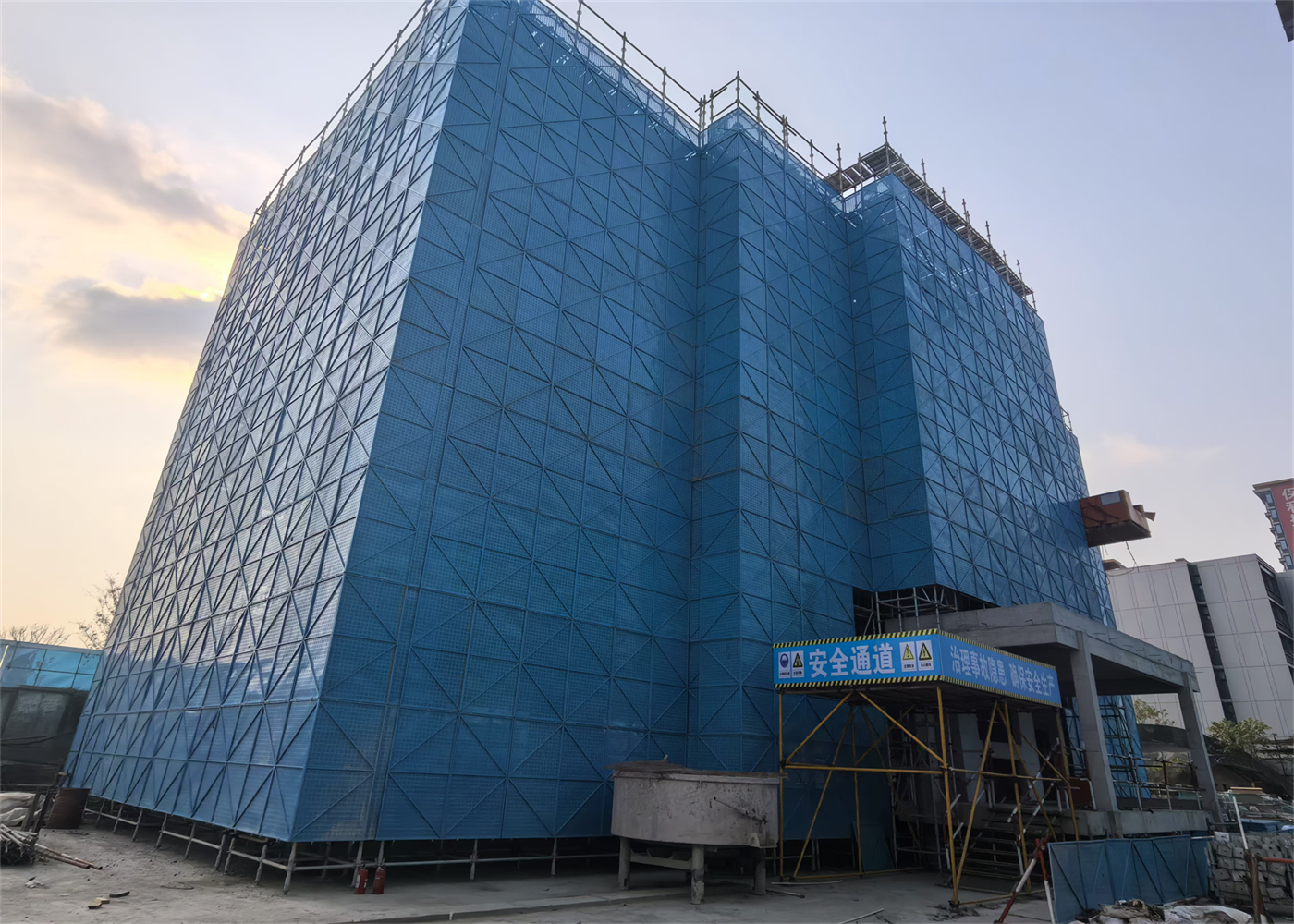 安全工期管理方面,针对高风险作业场景,项目团队坚持“安全第一、预防为主”,积极采用附着式脚手架、盘扣钢板网、高杆喷淋及智慧化工地等新技术的组合应用,既大幅提升了施工现场的安全防护等级与文明施工标准,也确保业主超严的工期要求。