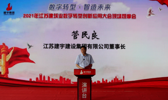 江苏省建筑业协会常务副会长纪迅厅长致辞,对建宇集团积极响应号召,大力发展装配式建筑+智慧工地做出的努力表示肯定。希望通过这次观摩建宇集团这个示范项目活动推动我省装配式、智慧化建筑人才队伍建设,加快推进我省装配式、智慧化建筑发展,为建设装配式、智慧化建筑强省添砖加瓦。